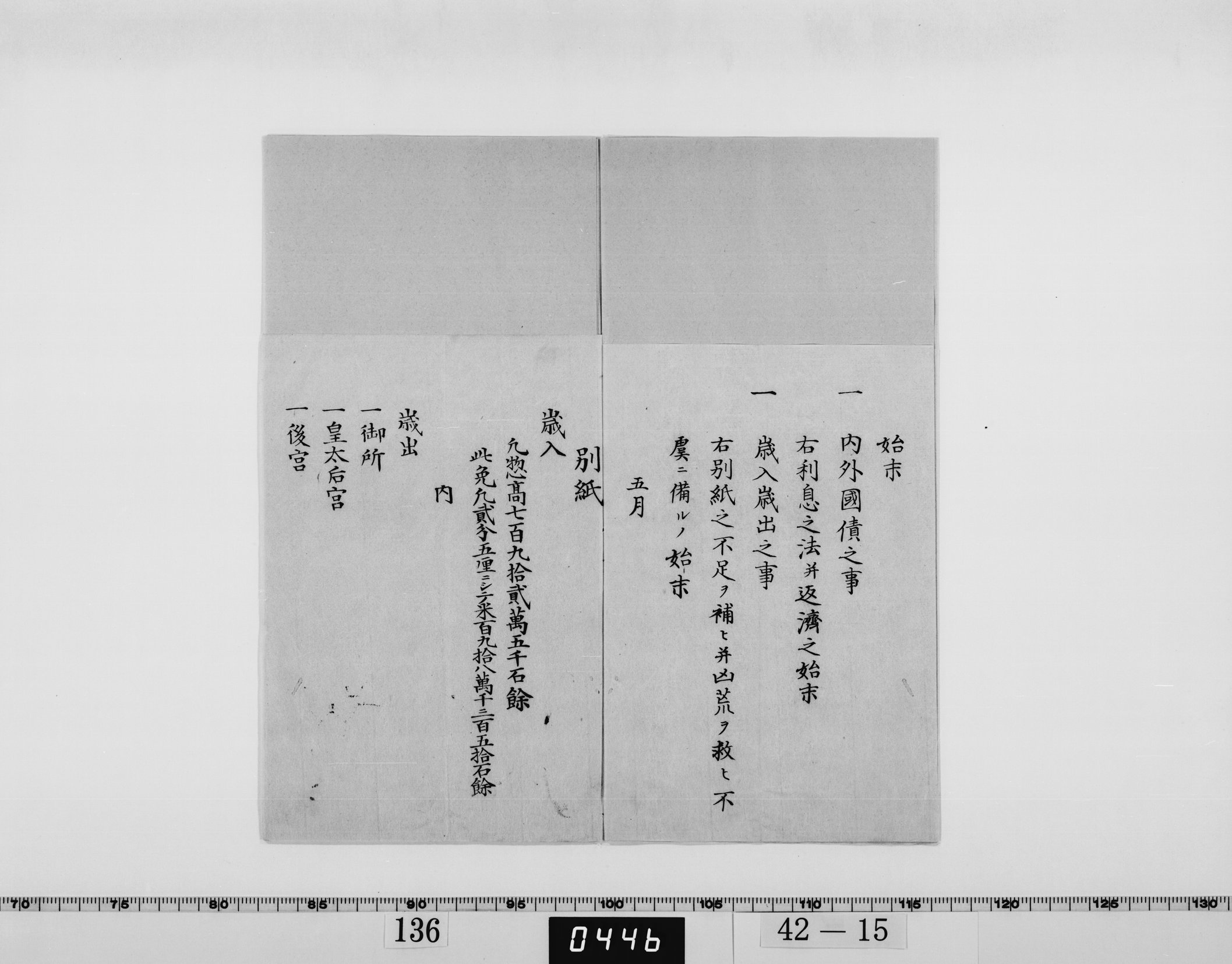 • 下問書(悪金銀・内外国債・歳入歳出について)
