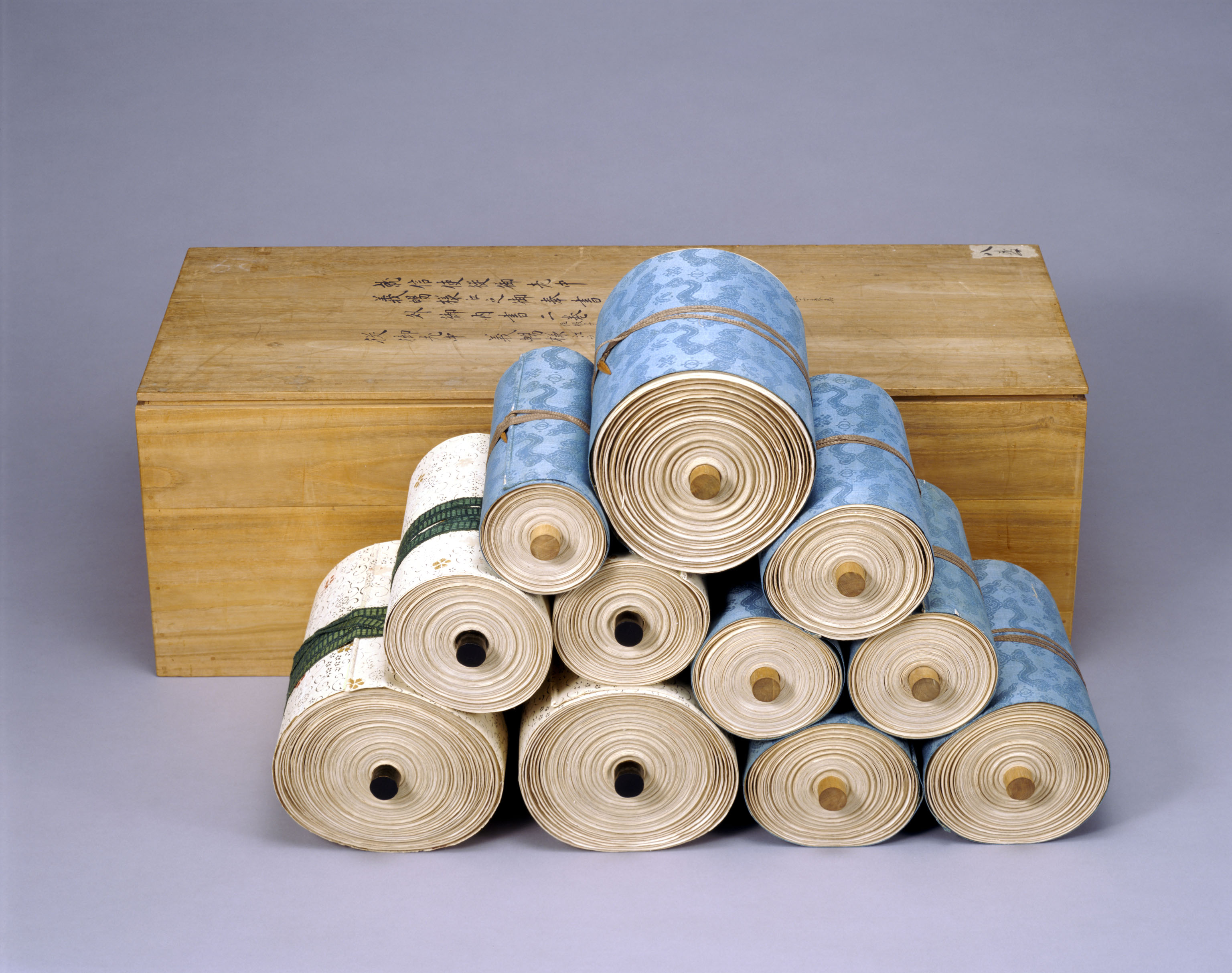 文化庁から九州国立博物館へ移った際の現状を重視し、1~139番までの箱番号を与えています。その現在の箱番号から検索できます。
